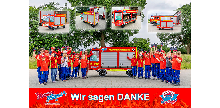 Und so wünschen wir den kleinen Ehrenamtlern stets gute Fahrt, viel Spaß bei den kommenden Feuer-Flitzer-Übungsdiensten, sagen von Herzen alles Gute und Wasser marsch!