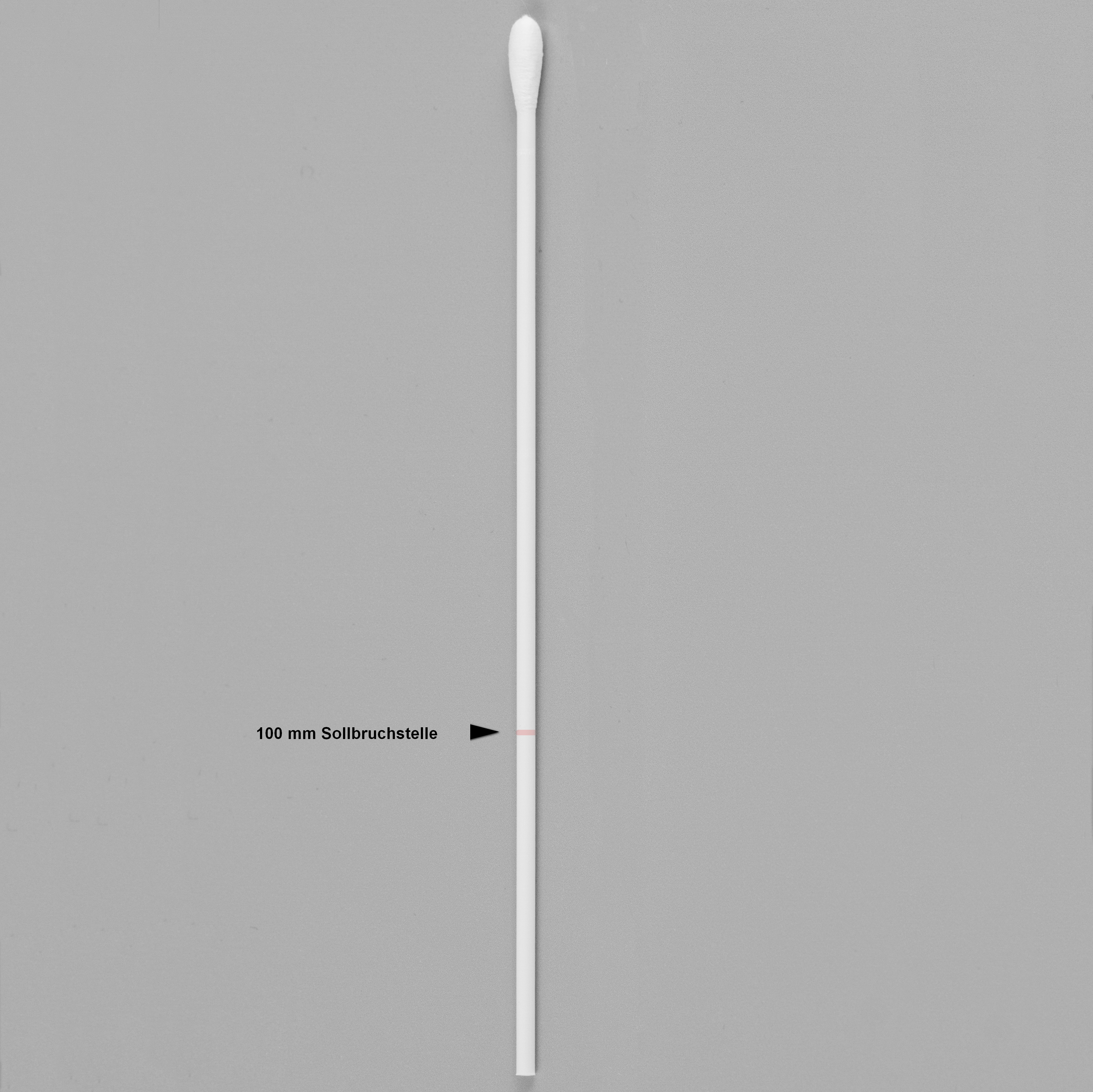 Steriler klassischer Tupfer mit Kunststoffschafft und regulärer Tupferspitze aus Polyester Fasermaterial. Sollbruchstelle bei 100 mm. Abstrichtupfer einzeln eingeschweißt.