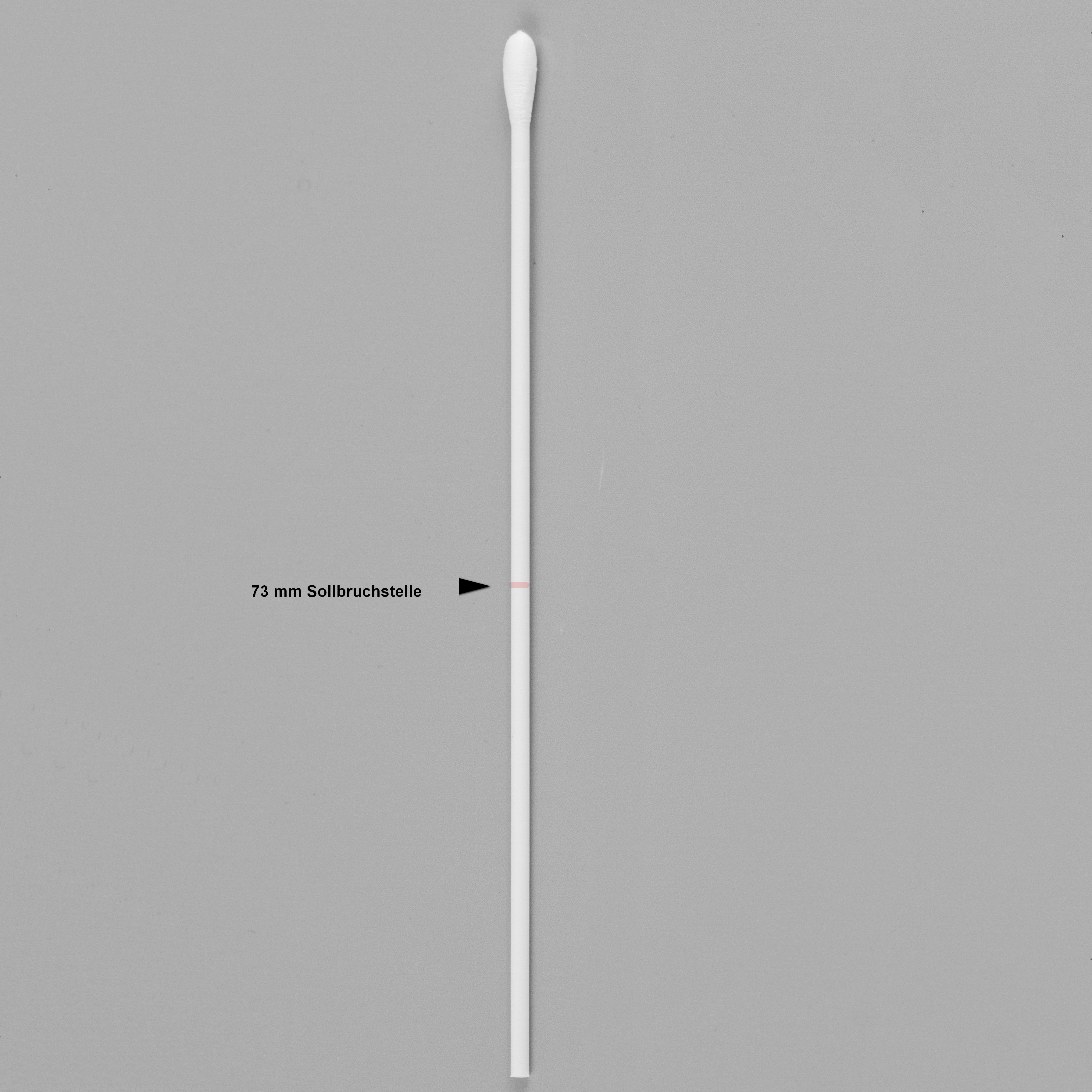 Steriler klassischer Tupfer mit Kunststoffschafft und regulärer Tupferspitze aus Polyester Fasermaterial. Sollbruchstelle bei 73 mm. Abstrichtupfer einzeln eingeschweißt.