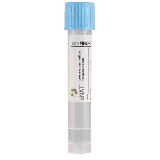 Das Entnahme- und Konservierungssystem Copan eNAT™ dient zum Entnehmen, Transportieren und Konservieren klinischer Proben, die für die Analyse durch Nukleinsäuren-Amplifikation vorgesehen sind. Das eNAT™ Medium stabilisiert und konserviert RNA/DNA über längere Zeiträume hinweg und ist mit handelsüblichen Plattformen zur Extraktion und Amplifikation von Nukleinsäuren kompatibel. eNAT™ Medium enthält ein Detergenz und Substanzen zum Denaturieren von Proteinen zur Inaktivierung mikrobieller Aktivitäten. eNAT™ Medium ist daher nicht für kulturbasierte Techniken einsetzbar.