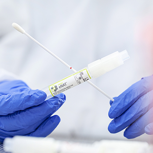 Das bewährte Copan eNAT® Medium dient zum sicheren Transportieren und Konservieren von Proben, die für die Analyse durch Nukleinsäuren-Amplifikation vorgesehen sind. Das eNAT® Medium inaktiviert infektiöses Probenmaterial, stabilisiert und konserviert RNA/DNA über längere Zeiträume hinweg und ist mit handelsüblichen Plattformen zur Extraktion und Amplifikation von Nukleinsäuren kompatibel.