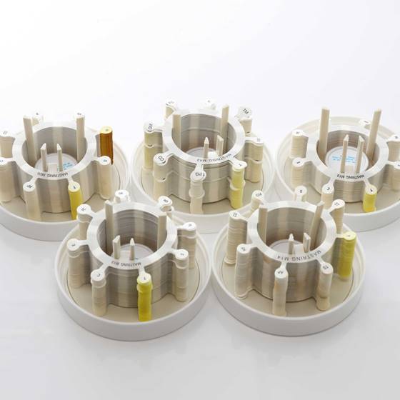 Ein Ringsystem mit 8 Antibiotika-Testblättchen zur Durchführung der Antibiotika- Empfindlichkeitsprüfung mittels Agardiffusion: