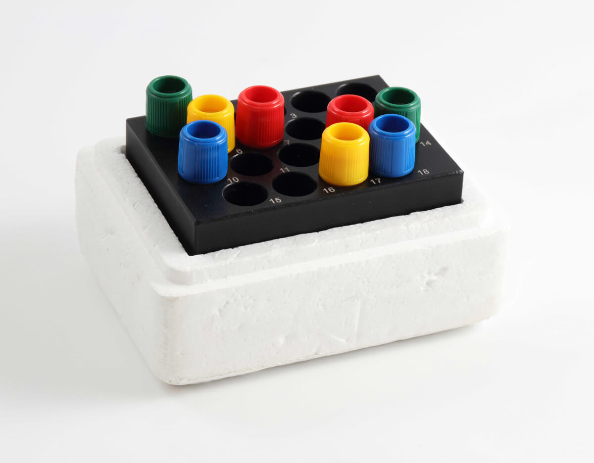 - 1 x Cryoblock für 18 Röhrchen (inkl. Styroporbox)