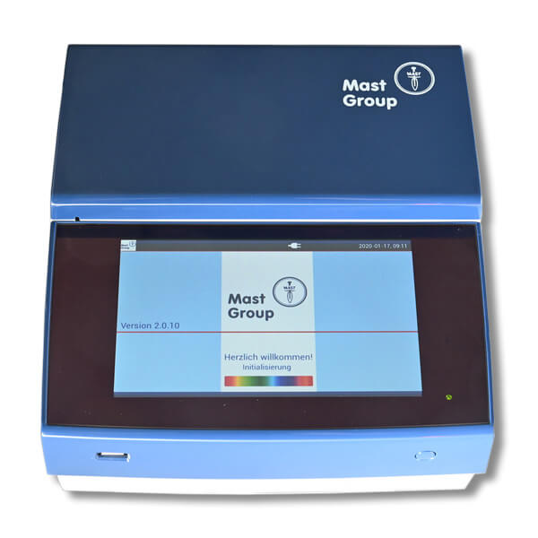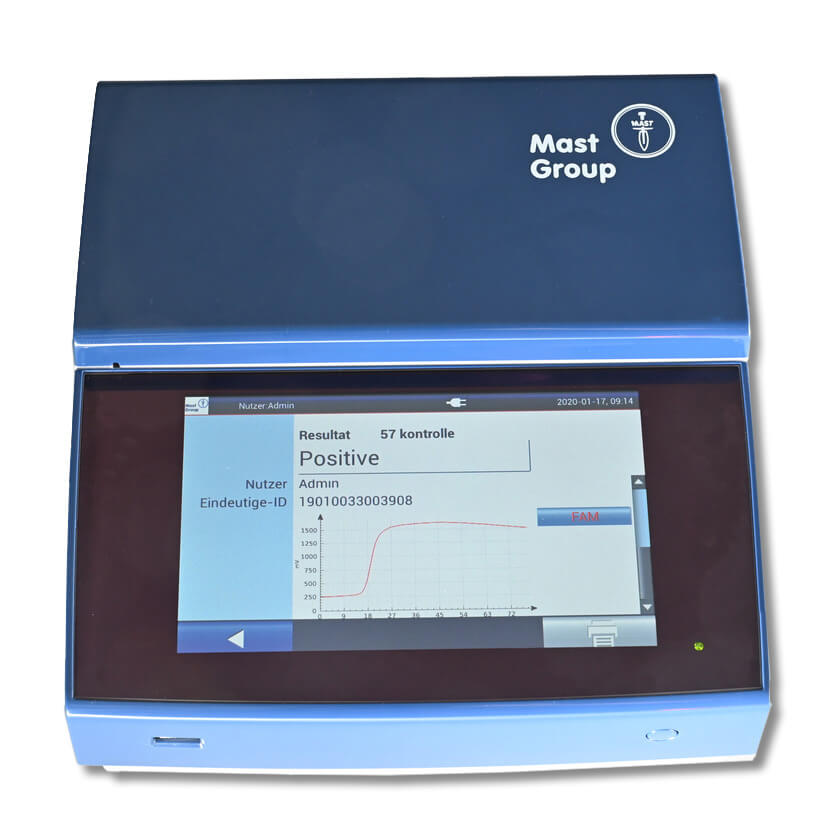 MASTISOPLEX® MD12 ist ein Stand-alone-Gerät, das bis zu 12 Reaktionsgefäße bei definierten Temperaturniveaus inkubieren und mit optischen Detektoren definierten Anregungs- und Emissionsfiltern Fluoreszenzmessungen als Real-time Analyse durchführen kann.