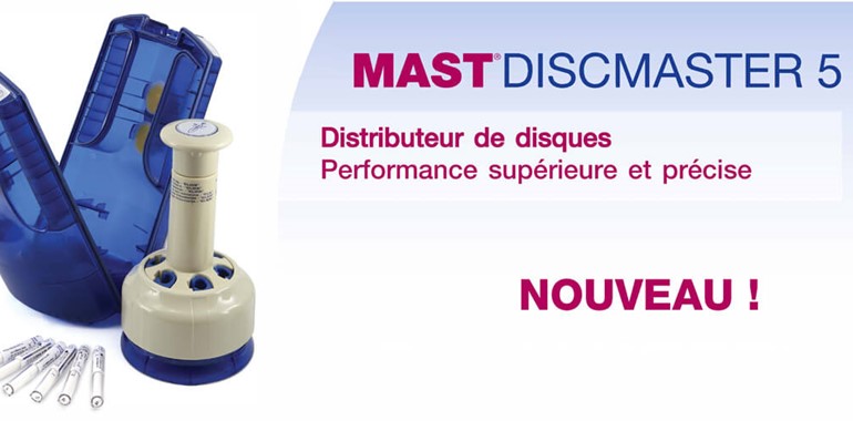 MAST® DISCMASTER 5 est un distributeur pour 6 disques, conforme à la méthode de diffusion des disques EUCAST, simple et intégrable à tous les laboratoires.