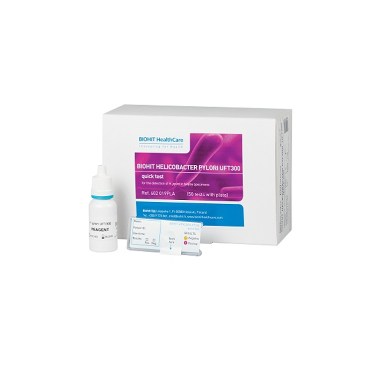 Le test rapide Biohit Helicobacter pylori UFT300 permet le dépistage rapide de H. pylori dans la muqueuse gastrique humaine.