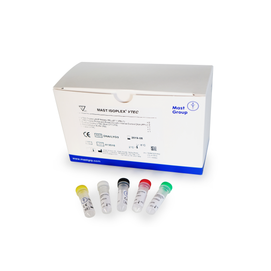 Le kit MAST ISOPLEX® VTEC est destiné au typage des variants 1 et 2 de VTEC (VT1 et VT2). Les gènes VT1 et VT2 peuvent être détectés simultanément en triplex avec un contrôle d'inhibition (IC DNA)