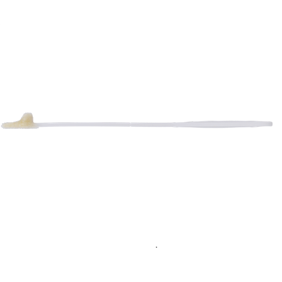 Ecouvillon floqué embout en L. Velour Nylon. Endo et exocervical Sachet unitaire stérile. Autocassable à 8 cm.