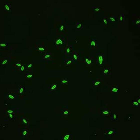 Lames et trousses MASTAFLUOR® Toxoplasma : test d'immunofluorescence de détection d'anticorps spécifiques à Toxoplasma gondii dans le sérum humain pour faciliter la confirmation et le diagnostic de l'infection à Toxoplasma.