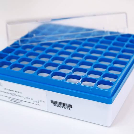 Boîte vide pour conservation à long terme de micro-organismes à basse température sur des billes de verre.