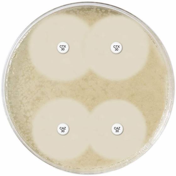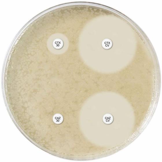 - Ceftazidime 30µg discs + Clavulanic acid 10µg discs (x3)