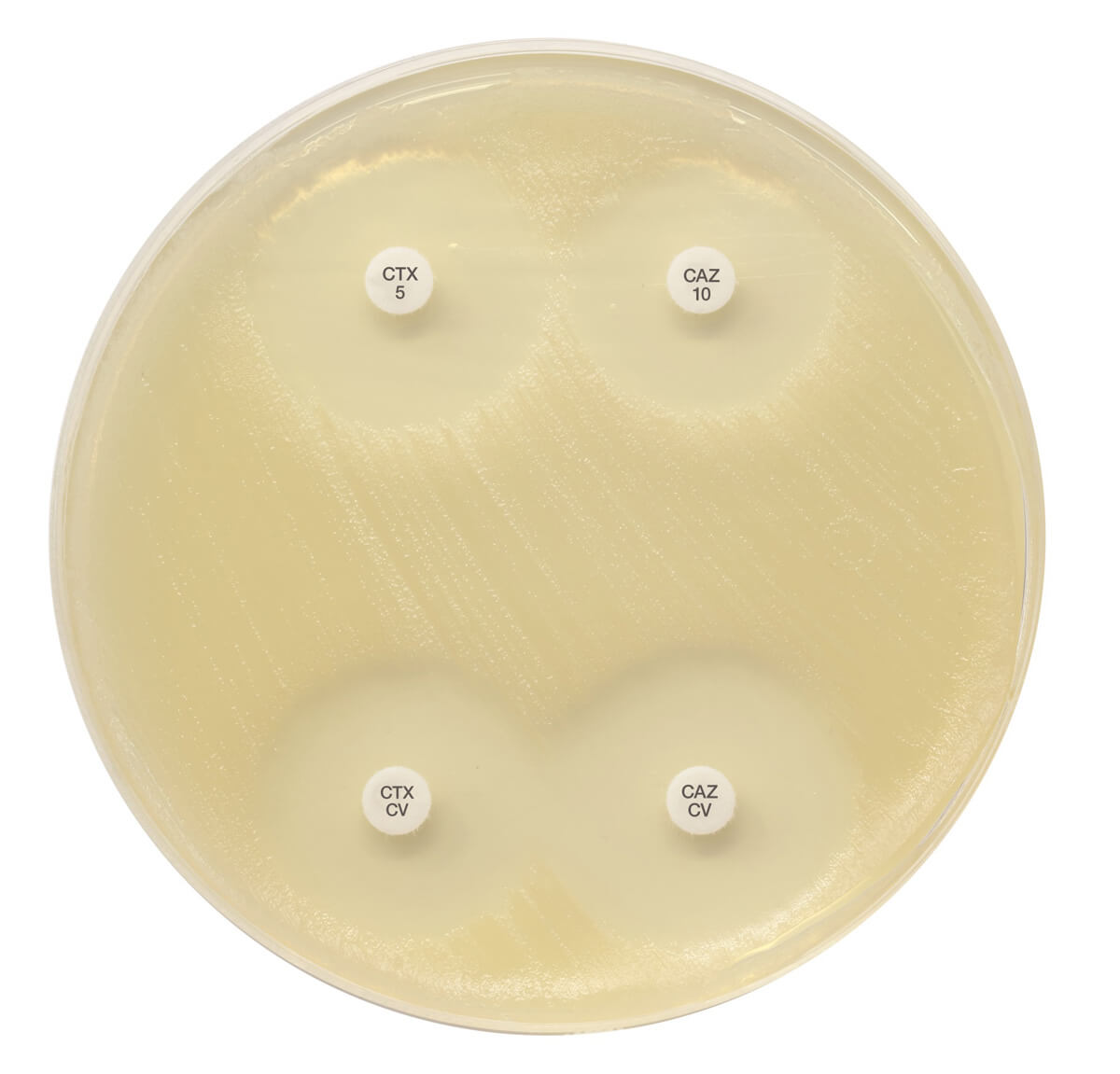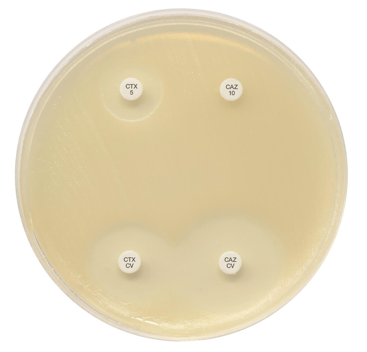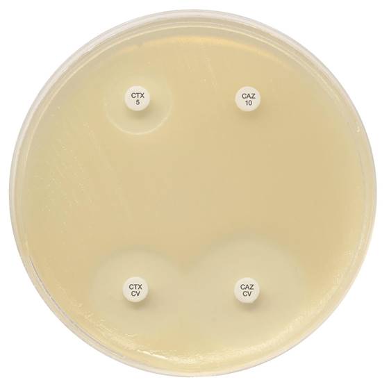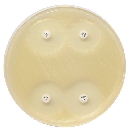 1 x Ceftazidime 10µg + Clavulanic acid 10µg discs
