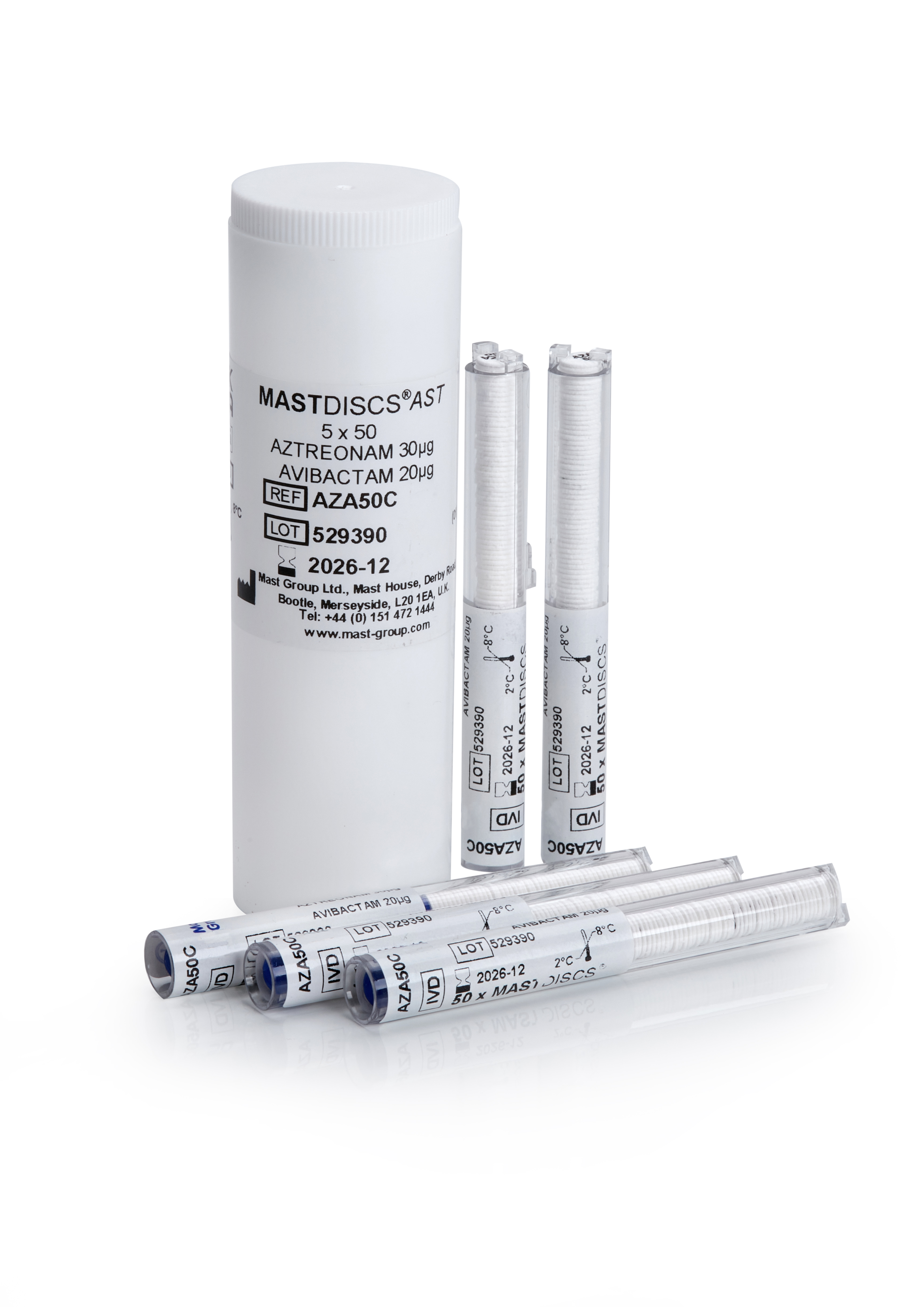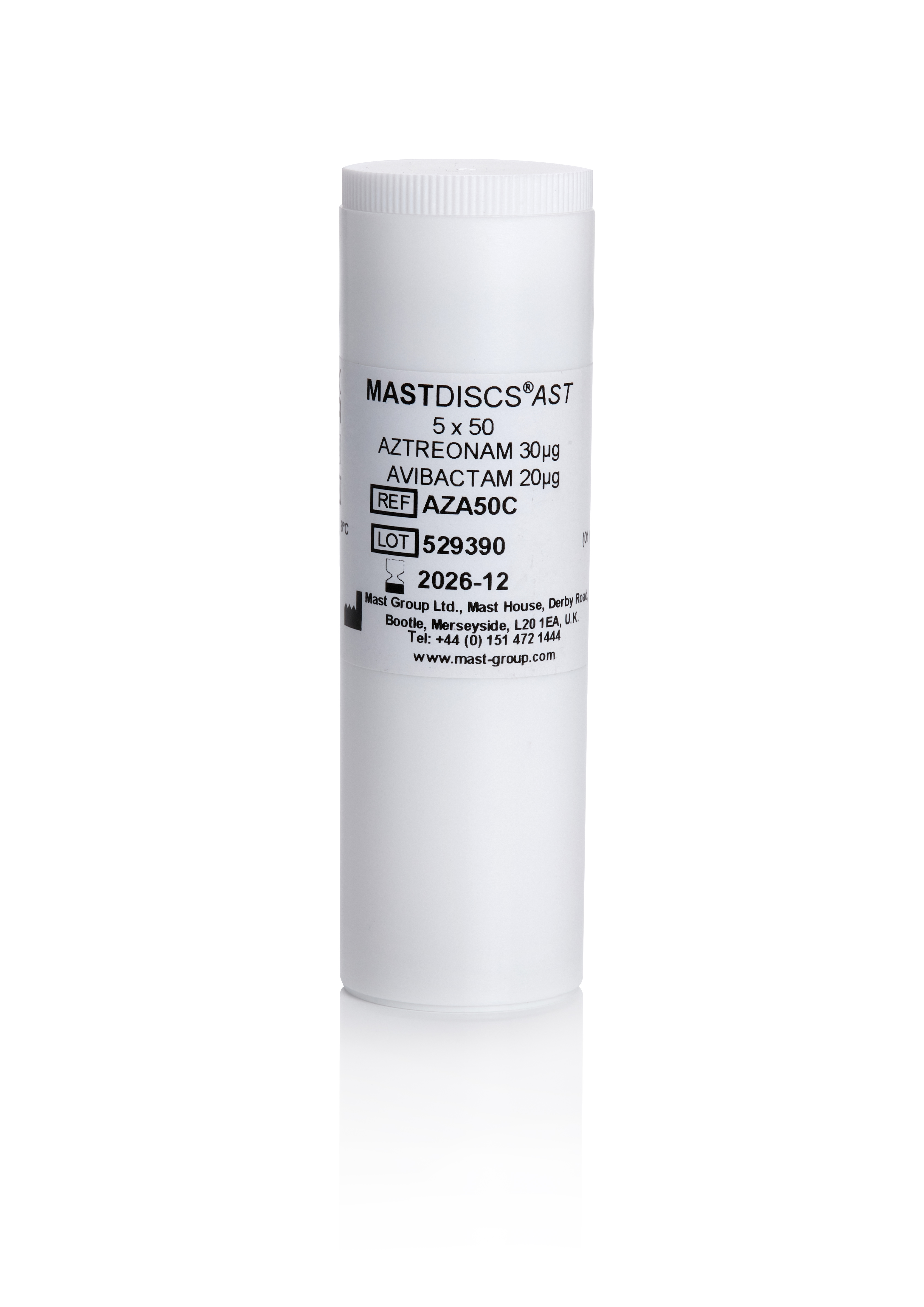 Individual antimicrobial susceptibility test discs in plastic dispensing cartridges containing Aztreonam 30 µg/ Avibactam 20 µg