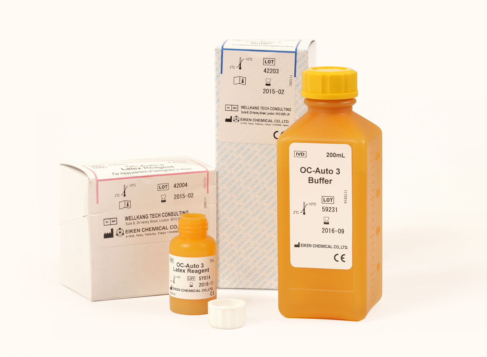 The latex reagent for the quantitative measurement of haemoglobin in faeces using OC-SENSOR iO immunochemical analyser.